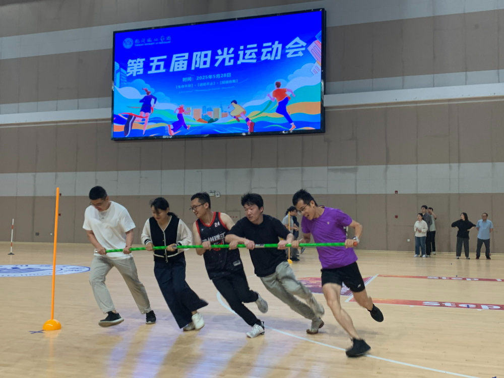 王定福指出,体育承载着国家强盛、民族振兴的梦想。运动,不仅是强身健体的手段,更是培养爱国主义、集体主义精神、提振民族自信心和自豪感的重要途径。一直以来,学校秉持“问理·育魂之旅”的教育理念,致力于培养德智体美劳全面发展的新时代青年,阳光体育正是践行“五育并举”教育方针的重要载体,通过运动强健体魄,展现温理工师生爱党爱国爱校的家国情怀和青春与活力。